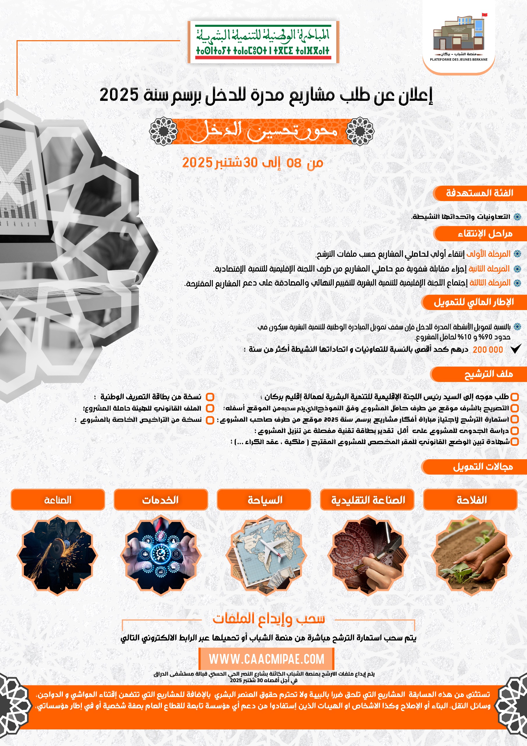 تم إحداث منصة الشباب لدعم ومصاحبة التعاونيات الصاعدة والمبادرات الحرة والتشغيل الذاتي بإقليم بركان في إطار المرحلة الثالثة للمبادرة الوطنية للتنمية البشرية، وتعتبر فضاء إقليميا للابتكار الاجتماعي للشباب وللتكوين وتقوية قدراتهم، وتهدف إلى دعم التشغيل وتشجيع إحداث المقاولات والتعاونيات والولوج إلى المعلومة